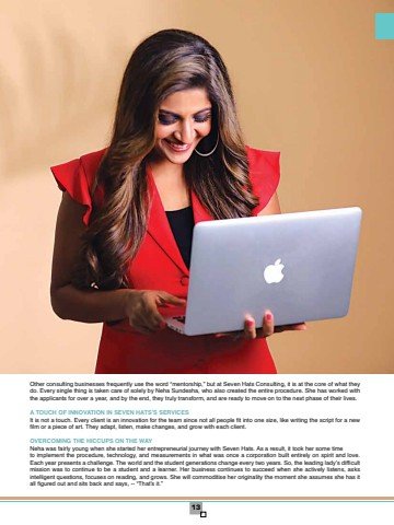 13Other consulting businesses frequently use the word %u201cmentorship,%u201d but at Seven Hats Consulting, it is at the core of what they do. Every single thing is taken care of solely by Neha Sundesha, who also created the entire procedure. She has worked with the applicants for over a year, and by the end, they truly transform, and are ready to move on to the next phase of their lives.A TOUCH OF INNOVATION IN SEVEN HATS%u2019S SERVICES It is not a touch. Every client is an innovation for the team since not all people fit into one size, like writing the script for a new film or a piece of art. They adapt, listen, make changes, and grow with each client.OVERCOMING THE HICCUPS ON THE WAY Neha was fairly young when she started her entrepreneurial journey with Seven Hats. As a result, it took her some timeto implement the procedure, technology, and measurements in what was once a corporation built entirely on spirit and love. Each year presents a challenge. The world and the student generations change every two years. So, the leading lady%u2019s difficult mission was to continue to be a student and a learner. Her business continues to succeed when she actively listens, asks intelligent questions, focuses on reading, and grows. She will commoditise her originality the moment she assumes she has it all figured out and sits back and says, -- %u201cThat%u2019s it.%u201d